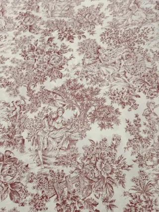 Retal de loneta con estampado Toile de Jouy. El retal mide 1m de ancho por 1,40m de alto - Diseño clásico y elegante. - Ideal para decoración y confección.