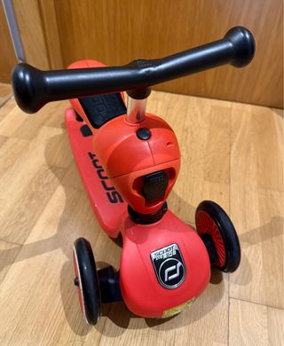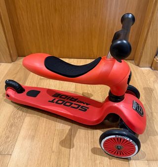 Patinete infantil de tres ruedas en color rojo. - Marca: Scoot and Ride - Modelo: Highway Kick 1 - Color: Rojo - Diseño de tres ruedas para mayor estabilidad. Patinete marca Scoot and Ride Highway kick 1, modelo 2 en 1 (para ir sentado y de pie) color rojo. Usado en 3 ocasiones. Ligeramente descolorido en el frente por el sol. Precio nuevo en Amazon 100€