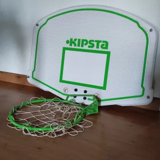 Canasta de baloncesto de la marca Kipsta, ideal para practicar este deporte. - Aro de color verde. - Red de malla blanca. - Tablero blanco con detalles verdes.