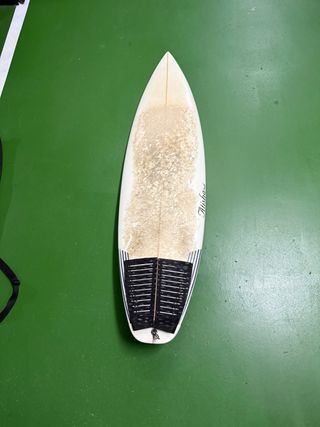 Tabla de surf de 5 pies y 10 pulgadas. Medidas en foto - squash tail - Diseño blanco con detalles en negro. - Incluye grip de agarre.