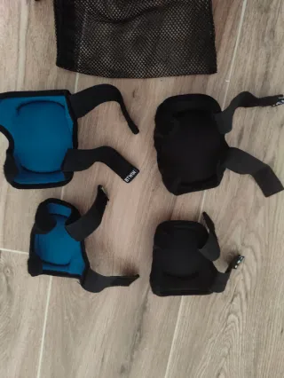 Set de protecciones para niños, ideal para patinar o montar en bicicleta. Incluye rodilleras y coderas. - Color negro. - Cierre de velcro ajustable. - Diseño ergonómico.