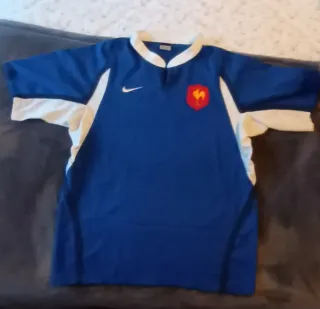 Camiseta de rugby de la selección de Francia. - Color azul. - Logo de Nike. - Escudo de la selección francesa.