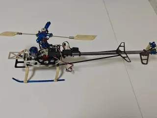 Helicóptero de radiocontrol eléctrico. Todo lo que se ve está en perfectas condiciones. Está incompleto, de ahí su precio. - Rotor principal con palas de plástico. - Rotor de cola. - Chasis metálico y de plástico. - Tren de aterrizaje azul. SE ESCUCHAN OFERTAS.