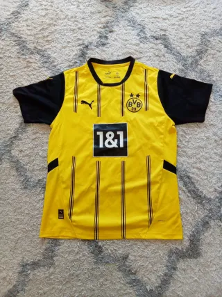 Camiseta oficial del Borussia Dortmund. - Diseño amarillo con detalles negros. - Logo de Puma y escudo del club. - Patrocinador 1&1.