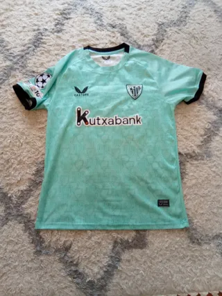 Camiseta del Athletic Club de Bilbao. - Talla M. - Color verde agua. - Diseño con escudo del club y patrocinador. - Detalle de logo de Castore en la manga.