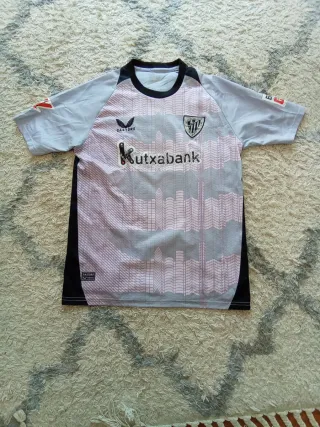 Camiseta oficial del Athletic Club de Bilbao. - Talla L. - Diseño moderno en tonos grises y rosas. - Logo de Castore y escudo del club. - Patrocinador principal visible.