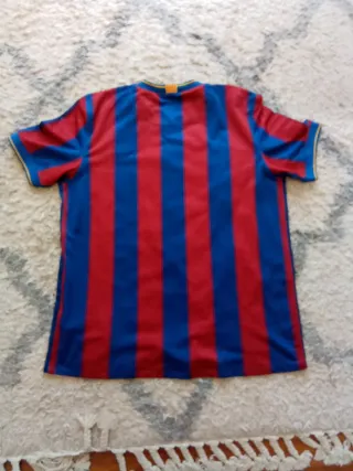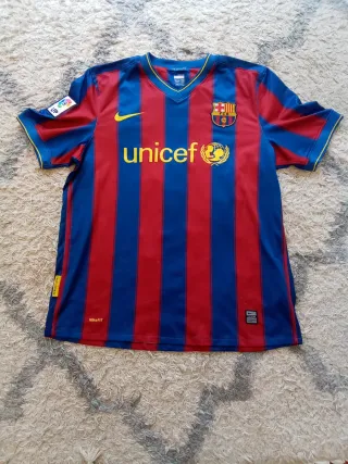 Camiseta de fútbol del FC Barcelona. - Talla L. - Diseño a rayas rojas y azules. - Logo de Unicef en el frontal. - Escudo del club bordado. - Parche de La Liga en la manga.