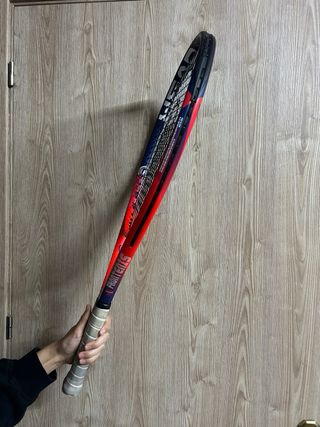 Vendo raqueta de tenis Head Eclipse Team Series (High Performance Fiber, posiblemente con tecnología Innegra para menos vibraciones y más durabilidad). • Marco rojo intenso con detalles azul/marino, diseño moderno y ligero. • Tamaño adulto estándar (27”), cabeza amplia para potencia fácil. • Cordaje negro en uso • Grip overgrip beige (desgastado pero funcional). • Marcas normales de uso: pintura saltada en aro superior y rayones leves (ver fotos), pero marco sin grietas ni daños estructurales. Modelo recreativo/intermedio de Head, ideal para jugadores que buscan equilibrio potencia/control