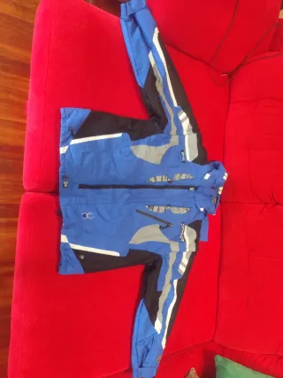 Chaqueta de esquí Spyder con un diseño llamativo en azul, negro y detalles grises y blancos. - Cremallera frontal completa. - Bolsillos con cremallera. Mangas desmontables. Talla L / XL Se vende por falta de uso