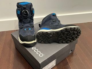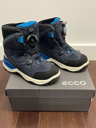 Botas de invierno para niños de la marca Ecco, talla 29. Usadas en una ocasión, como nuevas. - Color azul marino y detalles en azul. - Cierre con sistema BOA. - Membrana Gore-Tex para impermeabilidad. - Suela de goma antideslizante.