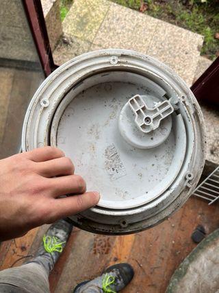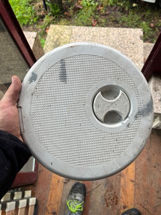 Ojo de buey redondo para embarcaciones. - Material: Plástico blanco. - Diseño con rejilla. - Cierre central.