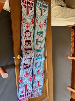Dos bufandas del Real Club Celta de Vigo. Perfectas para los aficionados del equipo. - Diseño con el escudo del club. - Colores azul y rojo. - Flecos en los extremos. PRECIO POR CADA UNA