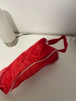 Zapatillero del Atlético de Madrid, ideal para llevar tus zapatillas. - Color rojo. - Logo del club. - Cierre de cremallera.