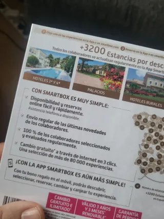 Experiencia Smartbox Mil y Una Noches de Felicidad para 2 personas. - Más de 3200 estancias disponibles. - Incluye opciones de 1 o 2 noches. - Posibilidad de desayuno, cena y acceso spa según la opción elegida. - Puntuación media de TripAdvisor de 4.5/5 en España.