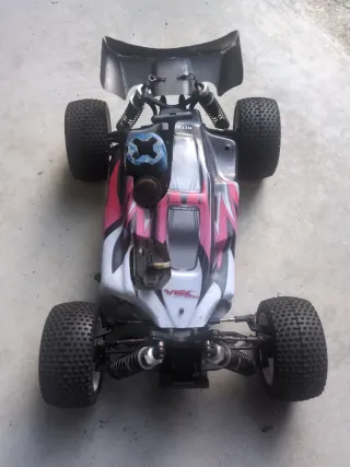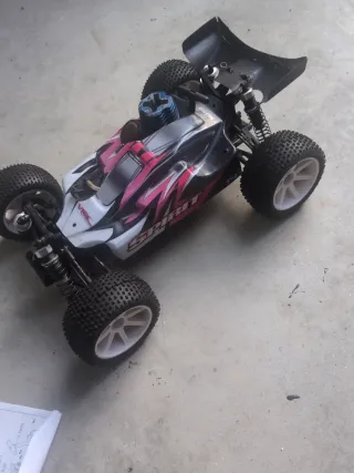 Coche radiocontrolado a escala 1/10 con motor de nitro. - Diseño deportivo con carrocería llamativa. - Neumáticos todoterreno. - Con recambios y algo de gasolina. *Se paro funcionando pero ahora no soi capaz de arrancarlo* Se vende con todo lo de la foto. Tiene muy poco uso pero lleva tiempo parado.