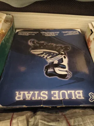 Patines en línea extensibles de la marca Blue Star. - Diseño en color azul y blanco. - Cierre de velcro y hebilla. - Ruedas ABEC 5.