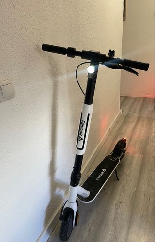Monopatín eléctrico Reebok con una velocidad máxima de 25 km/h. Ideal para reparaciones o piezas. -SE VENDE COMPLETO O POR PIEZAS. - Diseño en blanco y negro. - Logo de Reebok visible en el mástil y la base. - Incluye luz delantera y trasera. -Uso de 3 meses. -BATERÍA DAÑADA . -PRECIOS NEGOCIABLES POR PIEZAS.