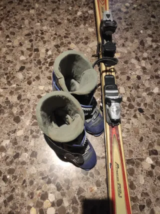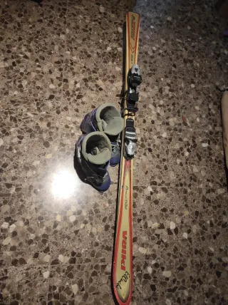 Se venden esquís de la marca Volkl con fijaciones y botas salomon. Tienen 15 años pero ahí están y para gastarte 50€ en alquiler te llevas estos y en tres veces que alquilas los tienes pagados. Son un poco duros y tienen marcas de los años pero hacen la función. -Marca de botas: Salomon - Talla de botas: 42. - Marca de esquís: Volkl. Precio negociable.