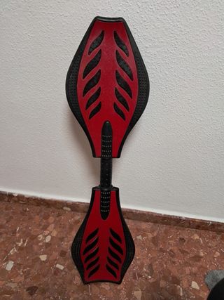 Waveboard con diseño deportivo en color rojo y negro. Ideal para deslizarse y practicar trucos. - Plataformas con superficie antideslizante. - Eje central giratorio. - Ruedas de alta resistencia.