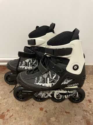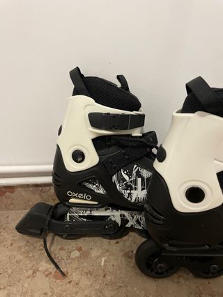 Patines en línea Oxelo con un diseño moderno y llamativo sin estrenar. - Color negro y blanco con estampado gráfico. - Cierre con cordones, velcro y hebilla. - Ruedas de 80mm. - Talla 42.