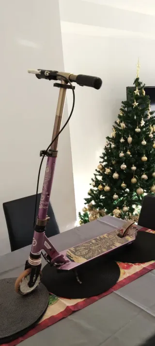 Patín de estilo libre diseñado para realizar saltos y trucos. el patín se encuentra bien tal cual como está en la fotos el manillar es ethic trianon (sin fisuras) la base es una ethic vulcain (sin fisuras) horquilla y tenedor nord (sin fisuras) rodamientos de caja totalmente nuevos se entrega con base para apoyarlo (lo único que se le tendría que hacer es cambiarle la lija por qué esta un poco gastada y cambiarle los rodamientos de las ruedas ya que ha estado mucho tiempo guardado)