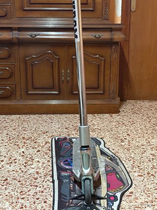 Patinete de estilo juvenil con un diseño llamativo. - Manillar ajustable. - Ruedas de gran tamaño. - Plataforma con diseño gráfico.