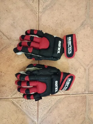 Par de guantes de hockey de la marca Genial. - Color negro y rojo. - Cierre de velcro en la muñeca. - Diseño deportivo.