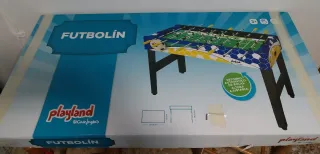 Futbolín de la marca Playland, distribuido por El Corte Inglés. Ideal para horas de diversión. - Diseño con temática de fútbol. - Retorno automático de bolas. - Altura ajustable.