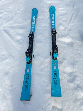 Esquís Head WorldCup Slalom e-SL PRO + Fijaciones FREEFLEX 14 GW - Uso : una temporada, 2025 - Longitud: 160 cm. - Modelo: e-SL PRO. - Marca: Head. - Precio tarifa 1.150€ El Worldcup Rebels e-SL Pro tiene los atributos de un esquí de slalom Worldcup, pero es menos exigente y más fácil de girar. El rendimiento proviene de un núcleo de madera y titanio, una placa de carrera Worldcup, paredes laterales fenólicas duraderas y un acabado de carrera. HEAD acorta el radio del e-SL Pro, lo que da como resultado un esquí diario accesible y de giro rápido con la potencia y precisión del esquí de carrera de slalom.