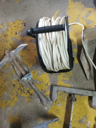 Conjunto de anclas para embarcaciones, incluye cabo y cadena.Precio según ancla. - Ancla plegable. - Ancla de arado. - Cadena de eslabones. - Cabo de amarre enrollado.