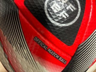 Balón oficial de edición limitada. - Diseño con franjas rojas y azules. - Detalles blancos. - Inscripción -DE-FOOT 24 y OFFICIAL MATCH BALL.