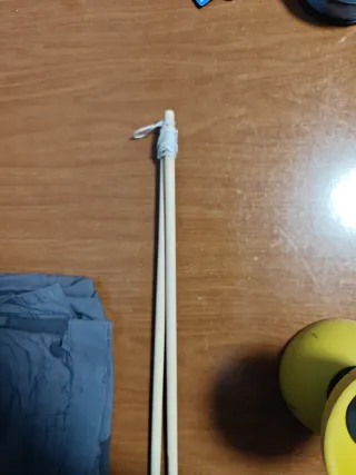 Diábolo amarillo de la marca Decathlon, ideal para Grado Medio de Deportes - Color amarillo. - Incluye palos de madera.