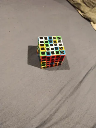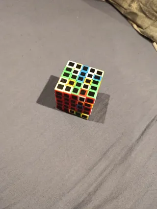 Cubo de Rubik de 5x5. - Diseño con acabado de fibra de carbono. - Colores vibrantes en cada cara.