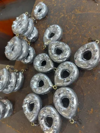 Lote Plomos pesca: 20 Plomos de 125gr 20 Plomos de 150gr Pintados 10 de cada uno de Negro y marrón