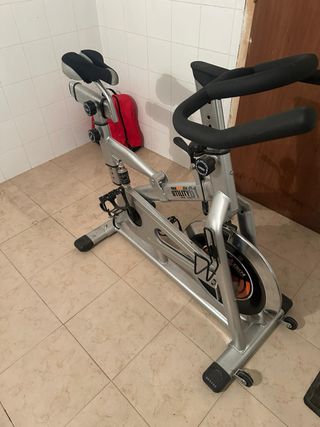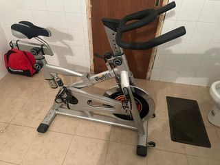 Bicicleta de spinning marca RXN Co. Modelo Utility 61. - Diseño plateado y negro. - Asiento ajustable. - Manillar ergonómico. -Sin usar -Precio original 750€