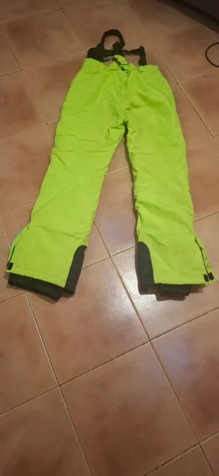 Pantalón de esquí de color verde neón, ideal para la montaña. Cuenta con tirantes ajustables para mayor comodidad. (NIÑOS de 158 a 164cm) - Tirantes negros. - Detalle en color gris oscuro en los bajos.