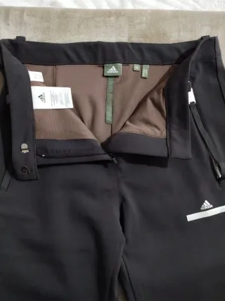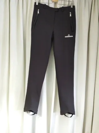 Pantalón de esquí de la marca Adidas. - Color gris oscuro. - Cremalleras en los bolsillos delanteros. - Logo de Adidas en la pierna izquierda - Tiras elásticas en los bajos. PVP 170€ aprox