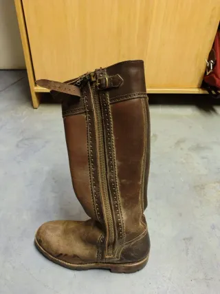 Botas de cuero para montar a caballo. Perfectas para equitación. - Material: Cuero. - Color: Marrón. - Diseño alto hasta la rodilla.