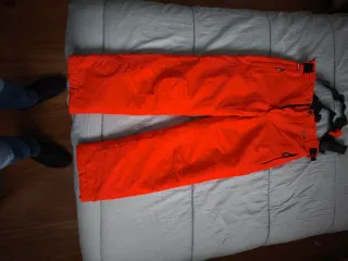 Pantalón de esquí de color naranja brillante, diseñado para la montaña. - Tirantes ajustables. - Cremallera frontal. - Bolsillos laterales. - talla 12/13 años