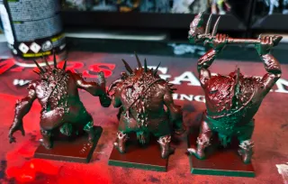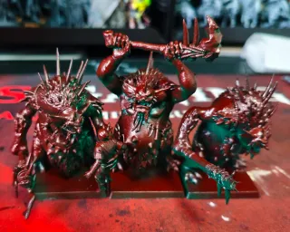 Conjunto de tres miniaturas de Trolls del Pantano o Caos. Ideales para coleccionistas o juegos de mesa como Warhammer Fantasy o Warhammer The Old World. - Tres figuras de Trolls. - Diseño detallado con púas y armas. - Imprimación Verde y Roja. - Peana de 40x40 imantadas. # Horda Troll # Orcos y Goblins # Guerreros del Caos