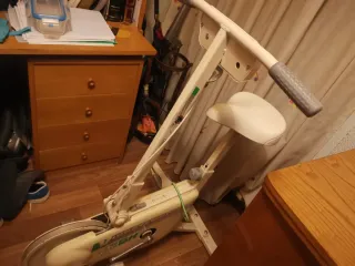 Bicicleta estática Micyox MX-600. Su diseño plegable con ruedas permite moverla y guardarla fácilmente. Está nueva y se vende por falta de uso. Costó 200€ hace menos de 1 año. Entrega en Segovia o alrededores. - Pantalla LCD - Sensor de Frecuencia Cardíaca - Asiento con respaldo. - Manillar ajustable. - Pedales con correas. - Bandas de Resistencia
