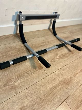 Vendo barra de dominadas nueva, sin usar. La compré pero al final no la he utilizado. Es resistente y tiene varias zonas acolchadas para poder hacer diferentes agarres cómodamente. Además, no daña ni araña el marco de la puerta, ya que las partes que apoyan están acolchadas. Perfecta para entrenar en casa: dominadas, fondos, abdominales, etc. Ideal si quieres ponerte en forma sin ir al gimnasio. Entrego en persona en Segovia o hago envíos en 24h. Cualquier duda contacta conmigo.