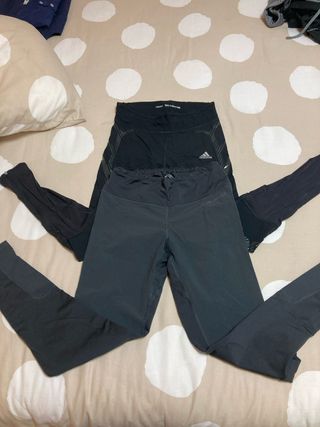 Conjunto de tres mallas deportivas para running o entrenamiento. - Malla Sural compresion, dos bolsillos, talla S. Nueva - Malla Adidas Aeroredy, detalles reflectantes y bolsillo lateral, talla S. Nueva. - Malla Asics Fujitrail, bolsillo lateral y tecnologia para isquiotibiales y gluteo, talla S. Poco uso. Se vende lote completo.