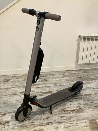 Patinete eléctrico Ninebot by Segway en buen estado. Tiene algunas marcas de uso, pero funciona correctamente. - Modelo Ninebot by Segway. - Color gris oscuro. - Incluye soporte para móvil. Se vende con el cargador y batería externa original que al montarla da error. La batería externa no es necesaria, la batería del patinete aguanta suficiente y carga rápido.