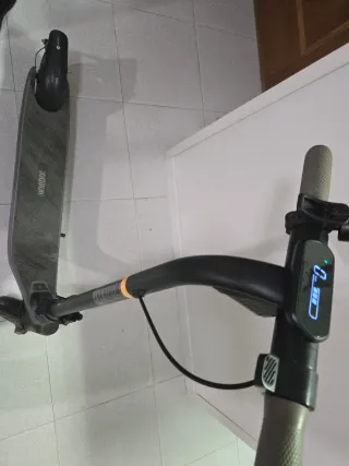 Patinete eléctrico de color negro, ideal para desplazamientos urbanos. - Manillar ajustable. - Rueda delantera y trasera. - Plegable para facilitar su transporte. MARCA SEGWAY F2 ESTADO IMPOLUTO SOLO CON 444 KM MOTIVO DE VENTA PORQUE NO SE USA