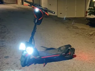 Patinete eléctrico Segway GT3E en color negro y detalles en rojo. Batería externa nueva. Hay que cambiar la maneta izquierda para que funcione. Le falta el botón de intermitentes. Menos de 300km de uso - Diseño robusto y moderno. - Ruedas delanteras y traseras. - Frenos de disco rojos.