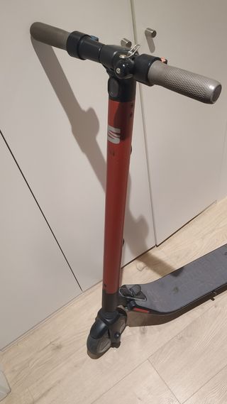 Patinete eléctrico SEAT Segway en buen estado. Incluye casco y correa antirrobo. - Color rojo y negro. - Diseño plegable para fácil transporte. - Rueda delantera y trasera. - Manillar ajustable.