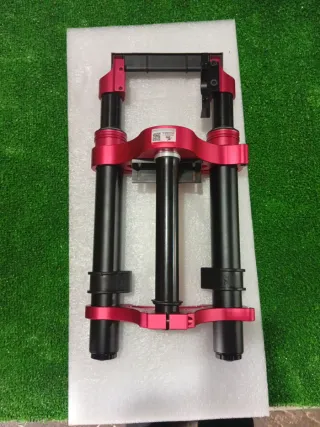 Horquilla delantera de la marca Monorim para patinete eléctrico Fabricada en aluminio de color rojo y negro. Para Segway ninebot ZT3/pro patinete electrónico ajuste de aire - Diseño robusto. - Acabado en aluminio anodizado rojo.