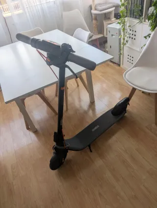 Patinete eléctrico Ninebot by Segway en color negro. Ideal para desplazamientos urbanos. Viene con cargador incluido no tiene ningún problema lo vendo ya que tengo uno nuevo tiene aplicación. - Diseño plegable para facilitar su transporte. - Ruedas de goma para mayor agarre. - Manillar ajustable en altura
