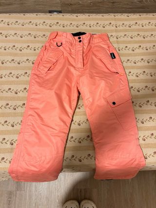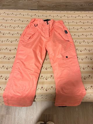Pantalón de nieve de color coral, ideal para actividades al aire libre. - Diseño con múltiples bolsillos. - Cierre de cremallera y botones. - Detalle de D-ring en la cintura.